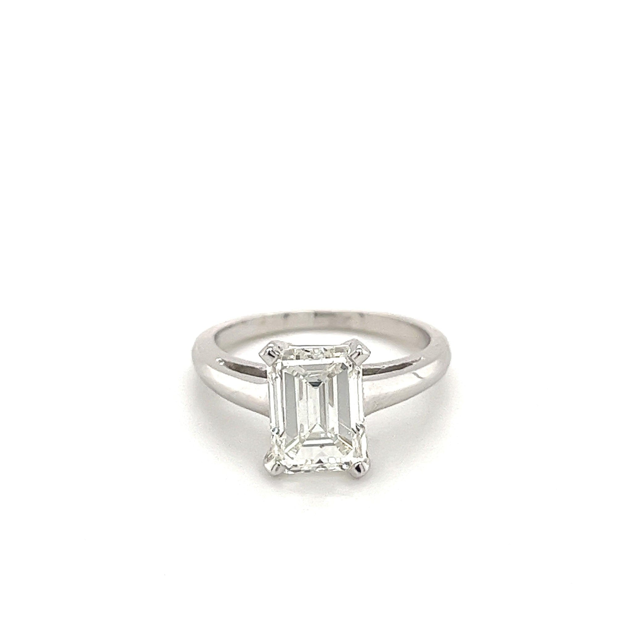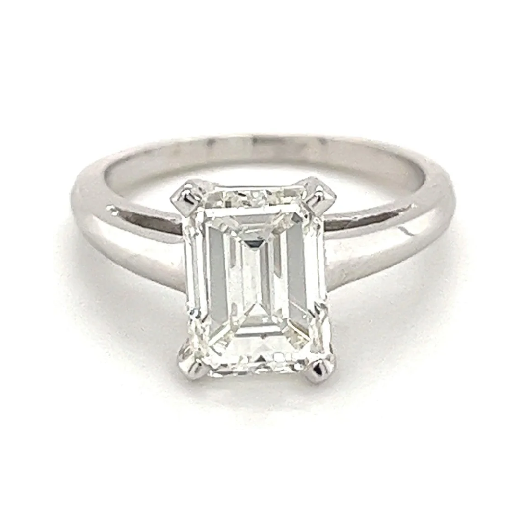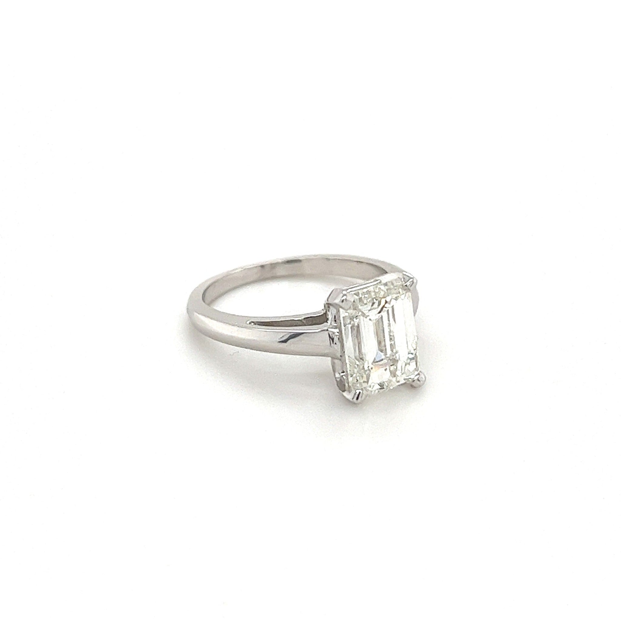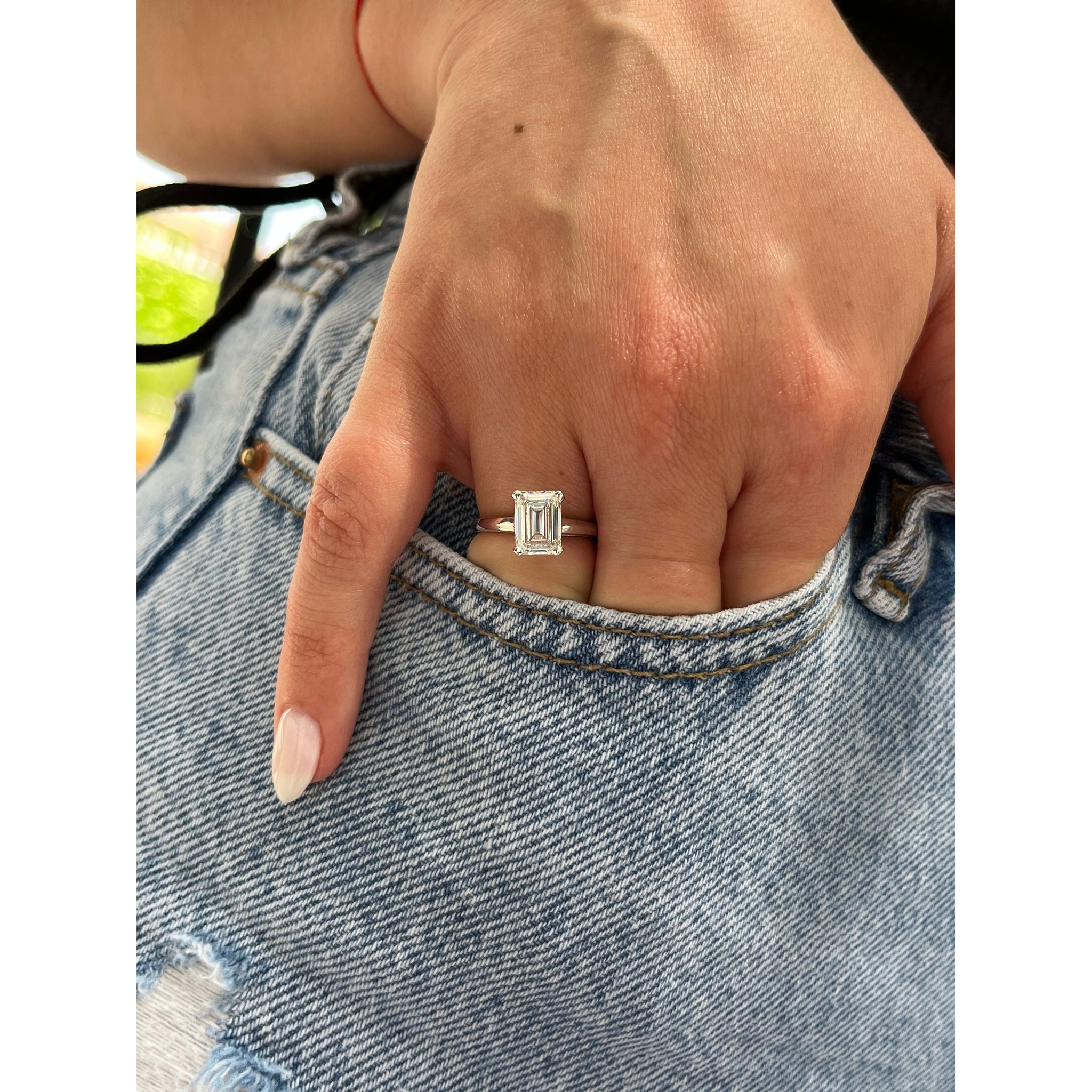 2.12 قيراط، زمرد قطع، لون H، نقاء VS2. 2.12 Carat Emerald Cut Lab Diamond Engagement Ring in 14k solid gold cathedral shank solitaire setting.