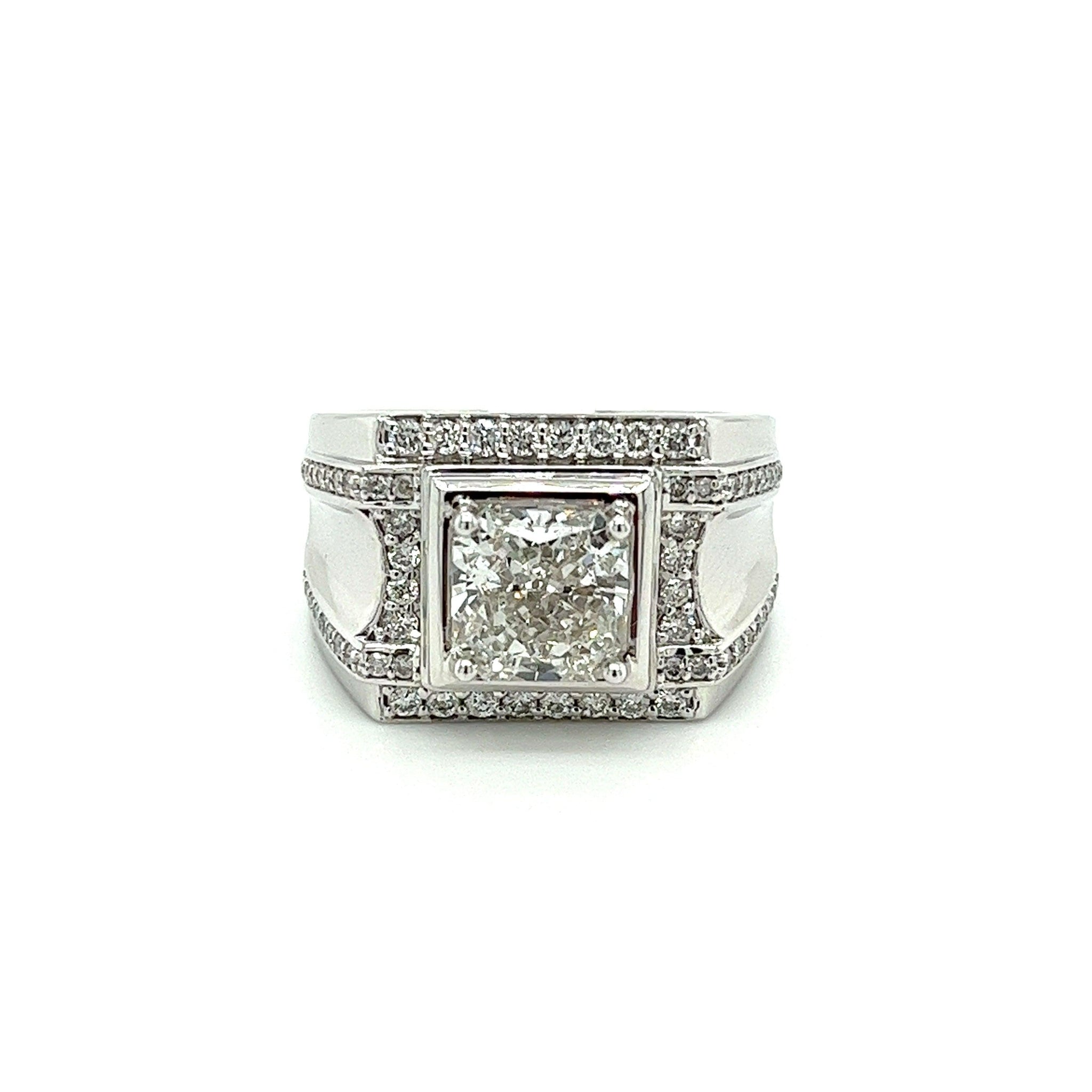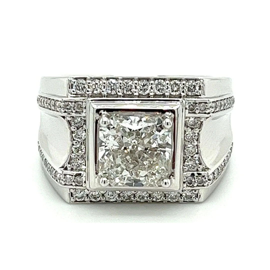 Ring رجالي مرصع بالألماس عيار 3.41 قيراط من الذهب الأبيض عيار 18 قيراط