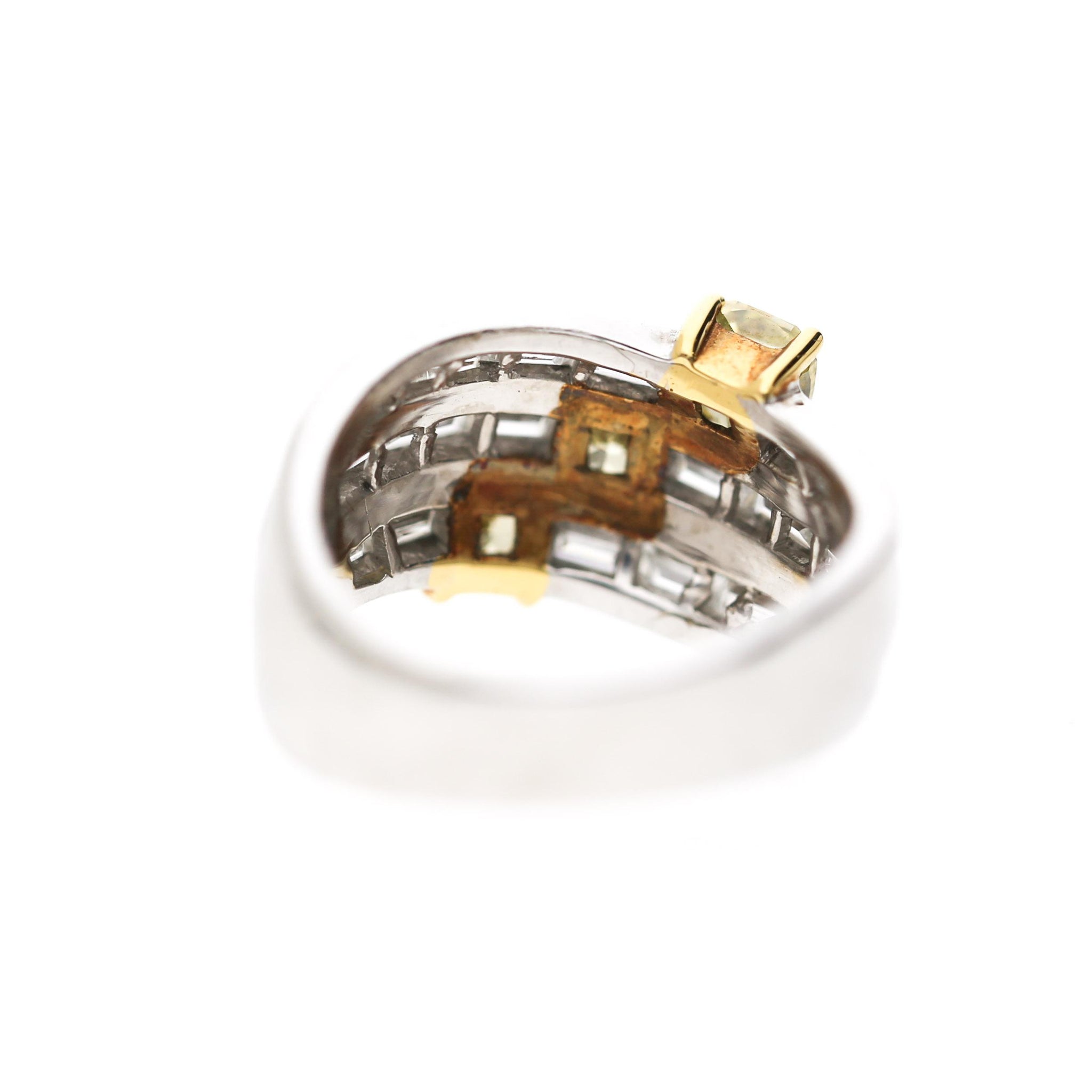 IGI Certified Fancy Deep Yellow & Greenish Yellow Diamond 18K Two Tone Gold Ring