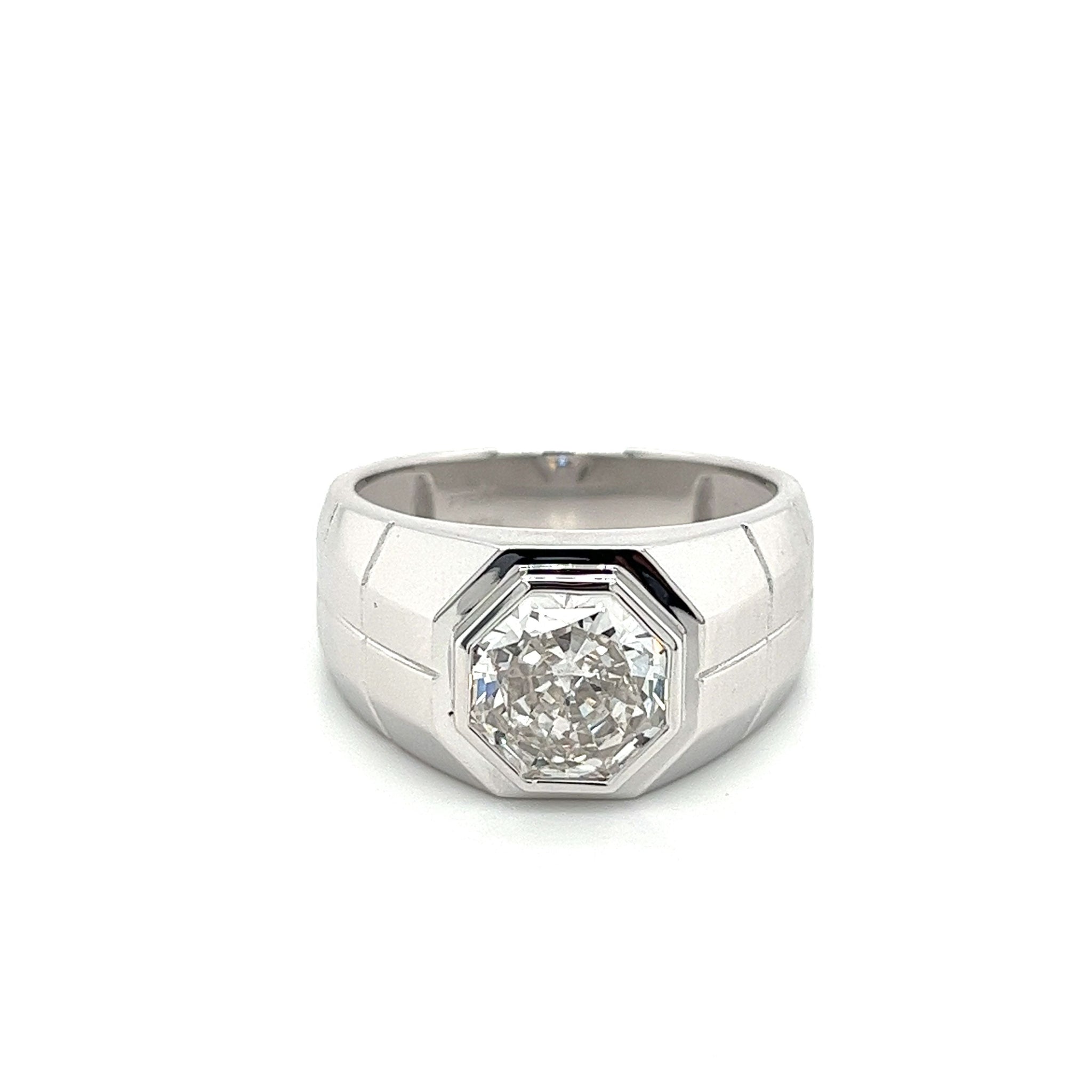 Élevez votre style avec notre Bague pour homme en diamant de laboratoire de 3 carats, taille octogonale, dotée d'un sertissage clos et d'une tige de Bague texturée en platine. Cette Bague exquise arbore un design chic et affûté, imprégnant un sens de classe inégalé. Avec ses caractéristiques uniques et séduisantes, c'est une pièce qui est sûre de captiver l'attention de tous ceux qui la regardent. Achetez maintenant et profitez de la qualité exceptionnelle de notre diamant de laboratoire de haute qualité, serti dans une Bague sophistiquée et élégante qui est véritablement unique en son genre.