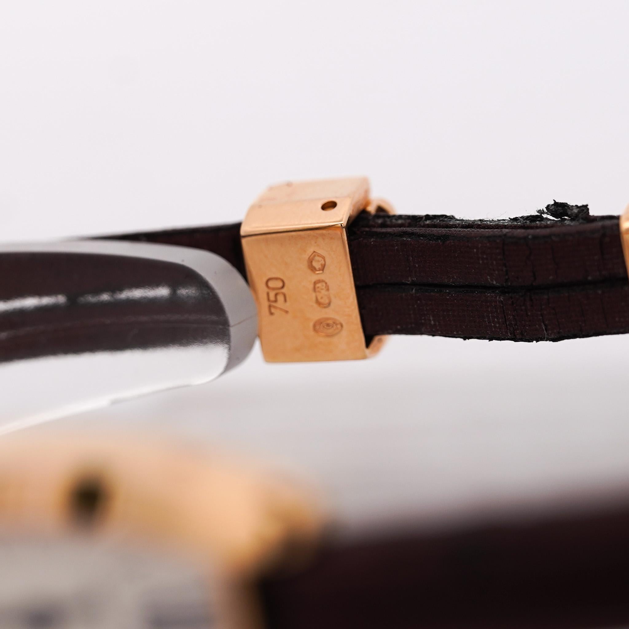 Cartier's Tonneau collection debuted in 1906 as one of the maison's earliest wristwatch designs, establishing the barrel-shaped case as an iconic alternative to traditional round cases. The Lanieres variation features distinctive double-wrap leather straps that wind around the wrist multiple times, creating jewelry-like wrist coverage that blurs the boundary between timepiece and bracelet. This Mini Tonneau represents Cartier's approach to feminine proportions during the 1990s, offering substantial visual presence despite diminutive case dimensions through the elongated tonneau silhouette. At just 16mm wide and 27mm long, this watch delivers Art Deco-inspired elegance suitable for vintage collectors and contemporary wearers seeking distinctive alternatives to conventional round watches. The 18K rose gold construction provides warmth and luxury while the Swiss quartz movement ensures reliable accuracy without manual winding. The inclusion of an extra strap offers versatility for different occasions and personal style preferences.