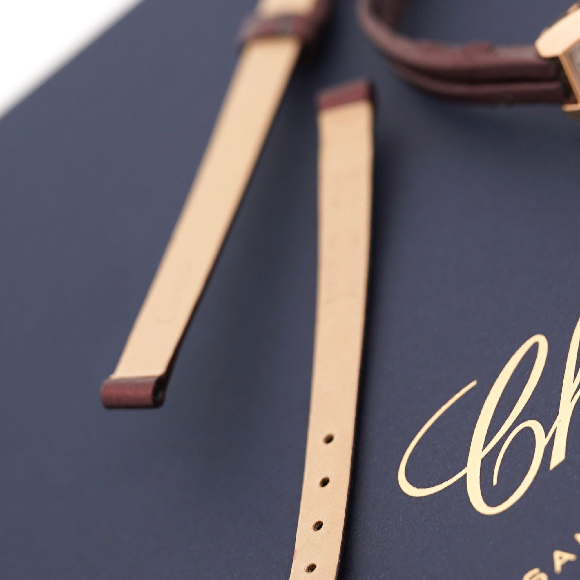 • Band Material: Burgundy Leather Double-Wrap Strap