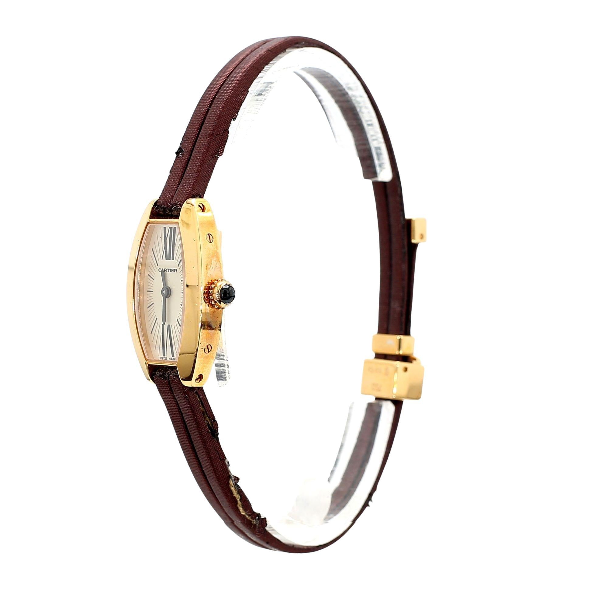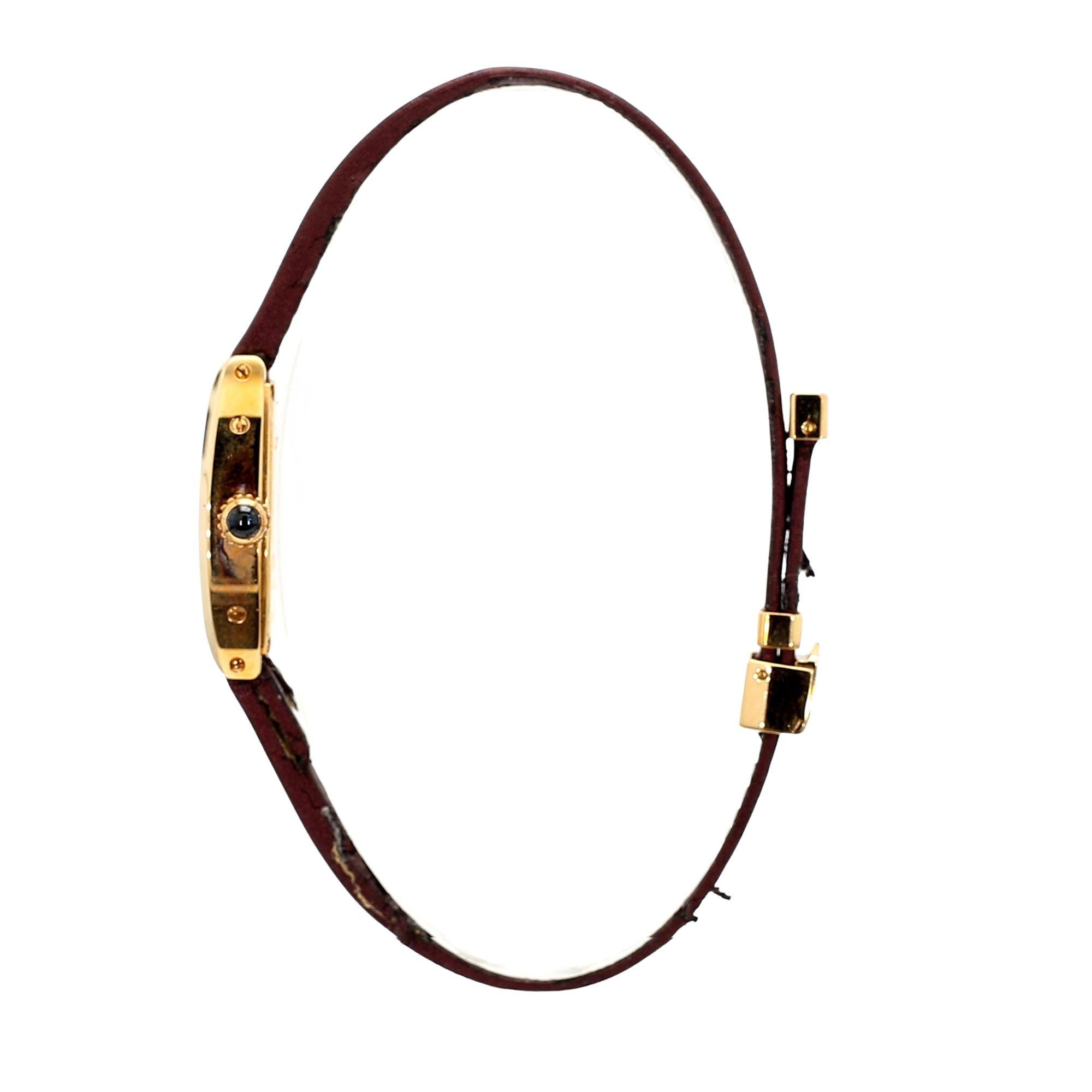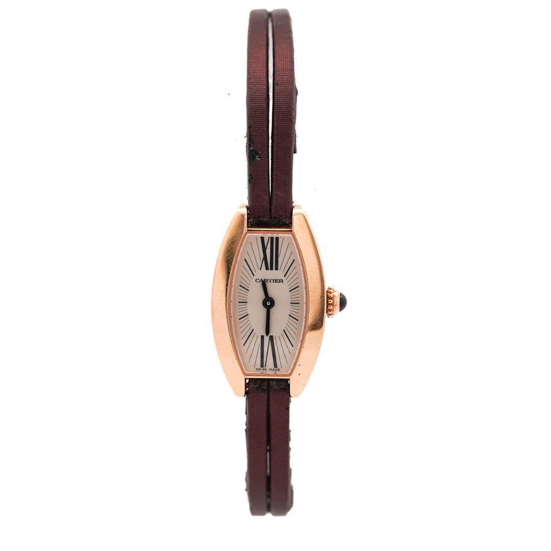 Cartier Mini Tonneau Lanieres 2592 18K Rose Gold Burgundy Strap Quartz Watch