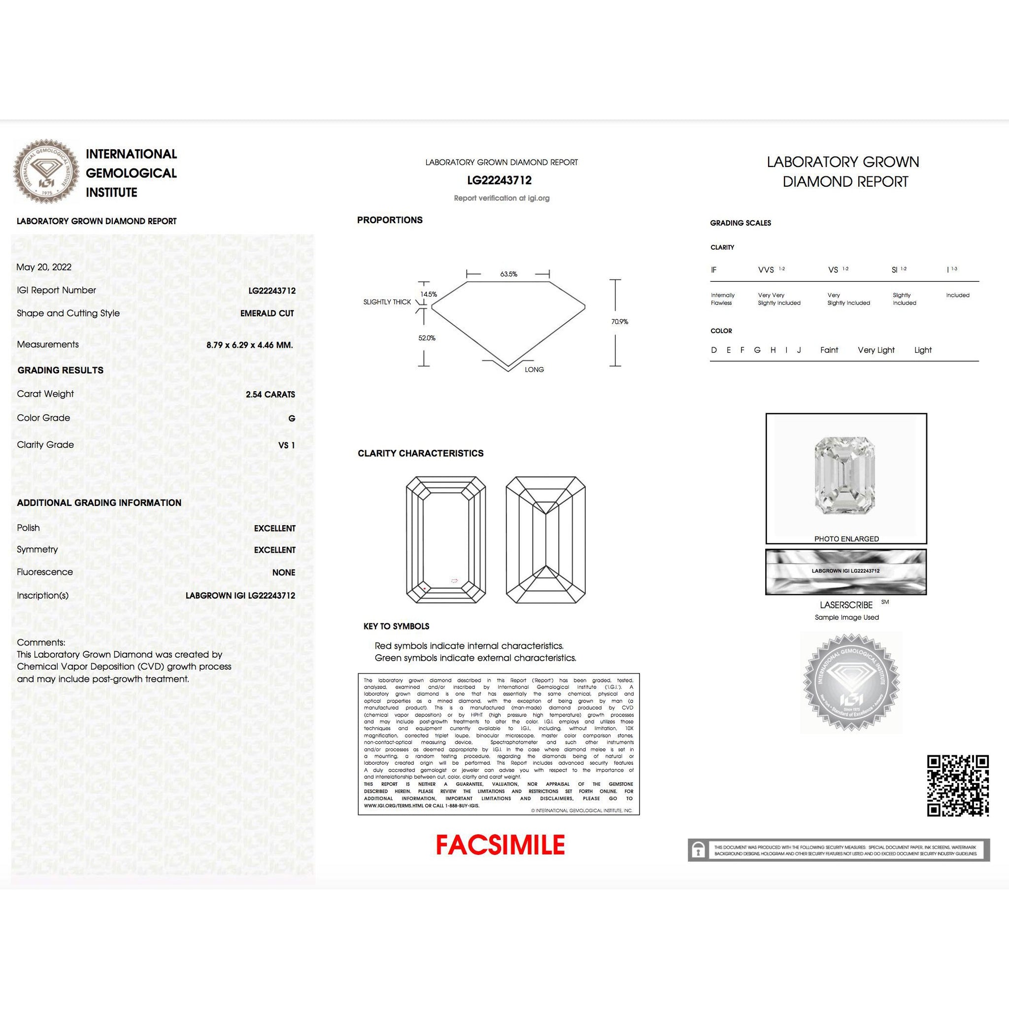 2.54 Carat G/VS1 Emerald Cut Lab Grown Diamond Ring in 14k White Gold | IGI Certified