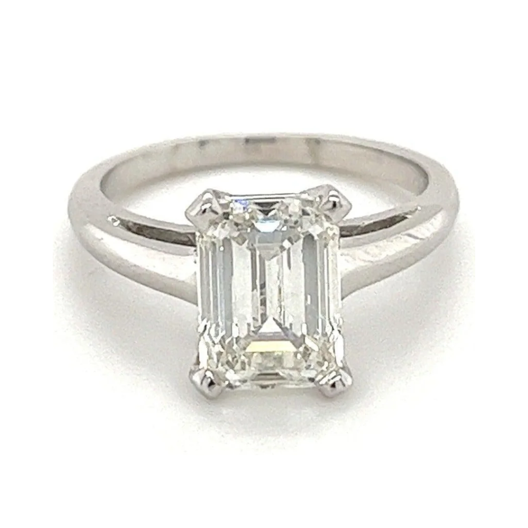 2.54 CARAT Emerald Cut Lab Diamond Engagement Ring in platinum. Emerald cut, G color, VS1 clarity.