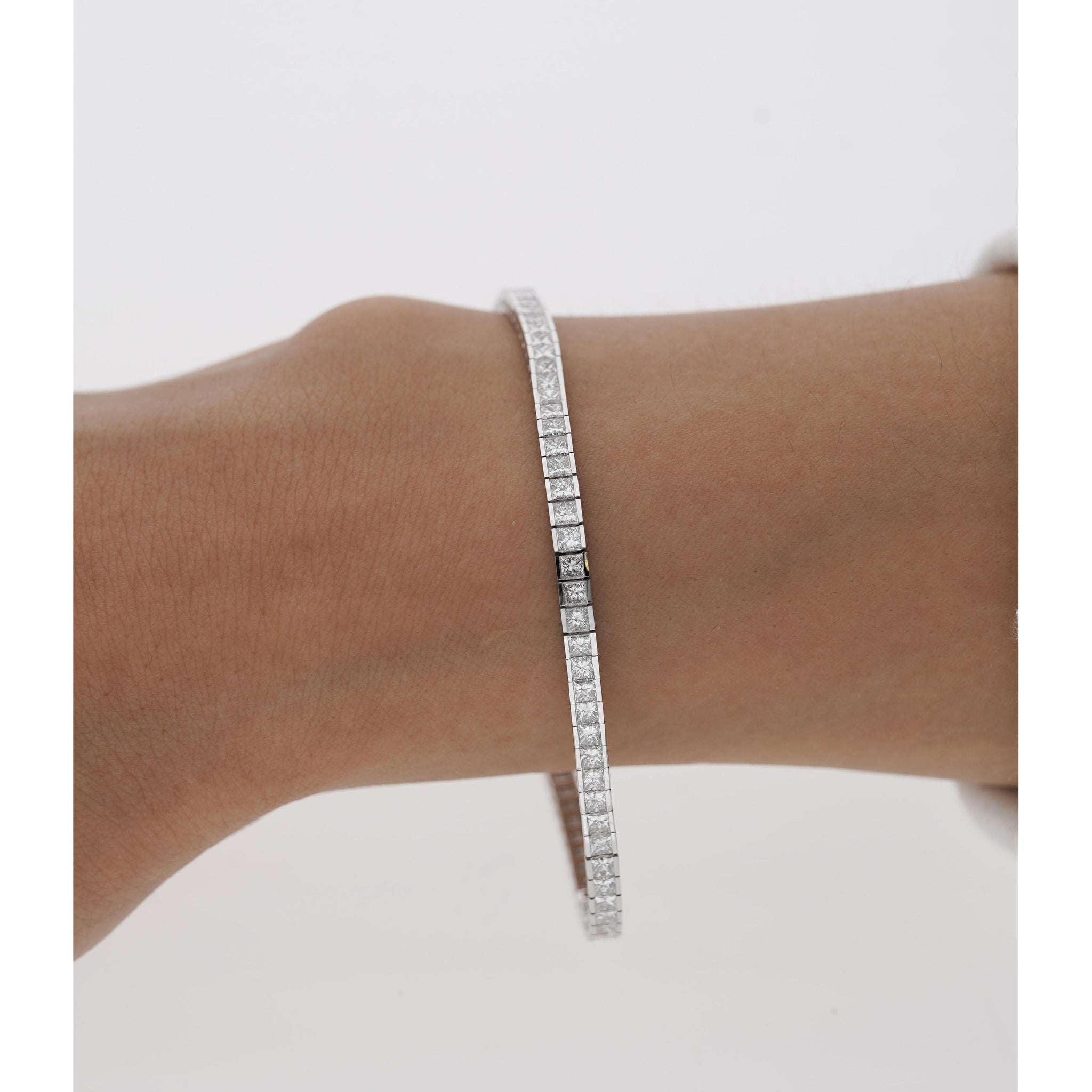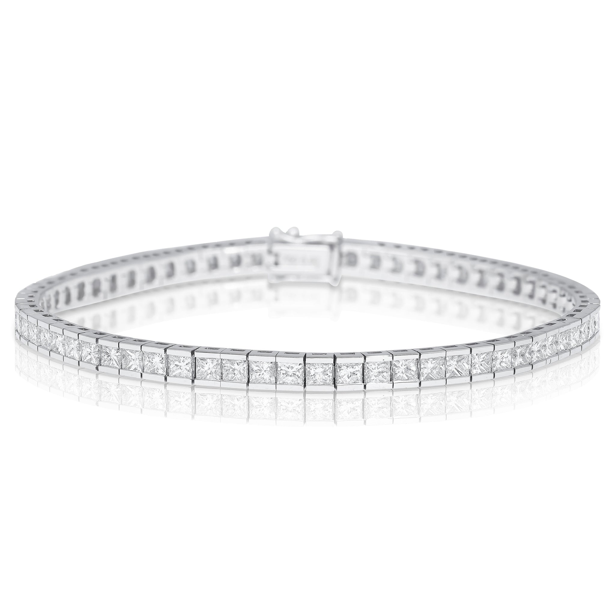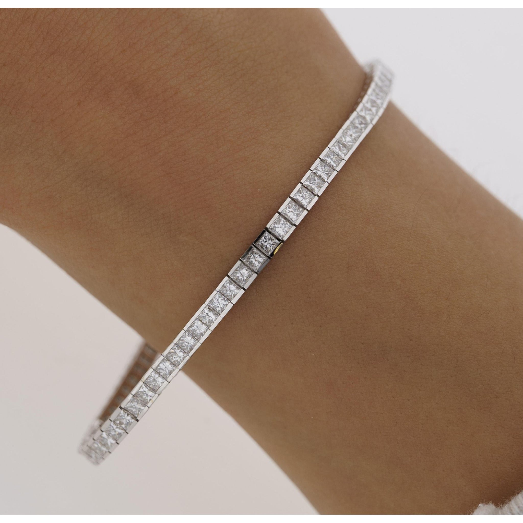 4.7 Carat Princess Cut Diamond Half Bezel Tennis Bracelet in 18K White Gold 7"