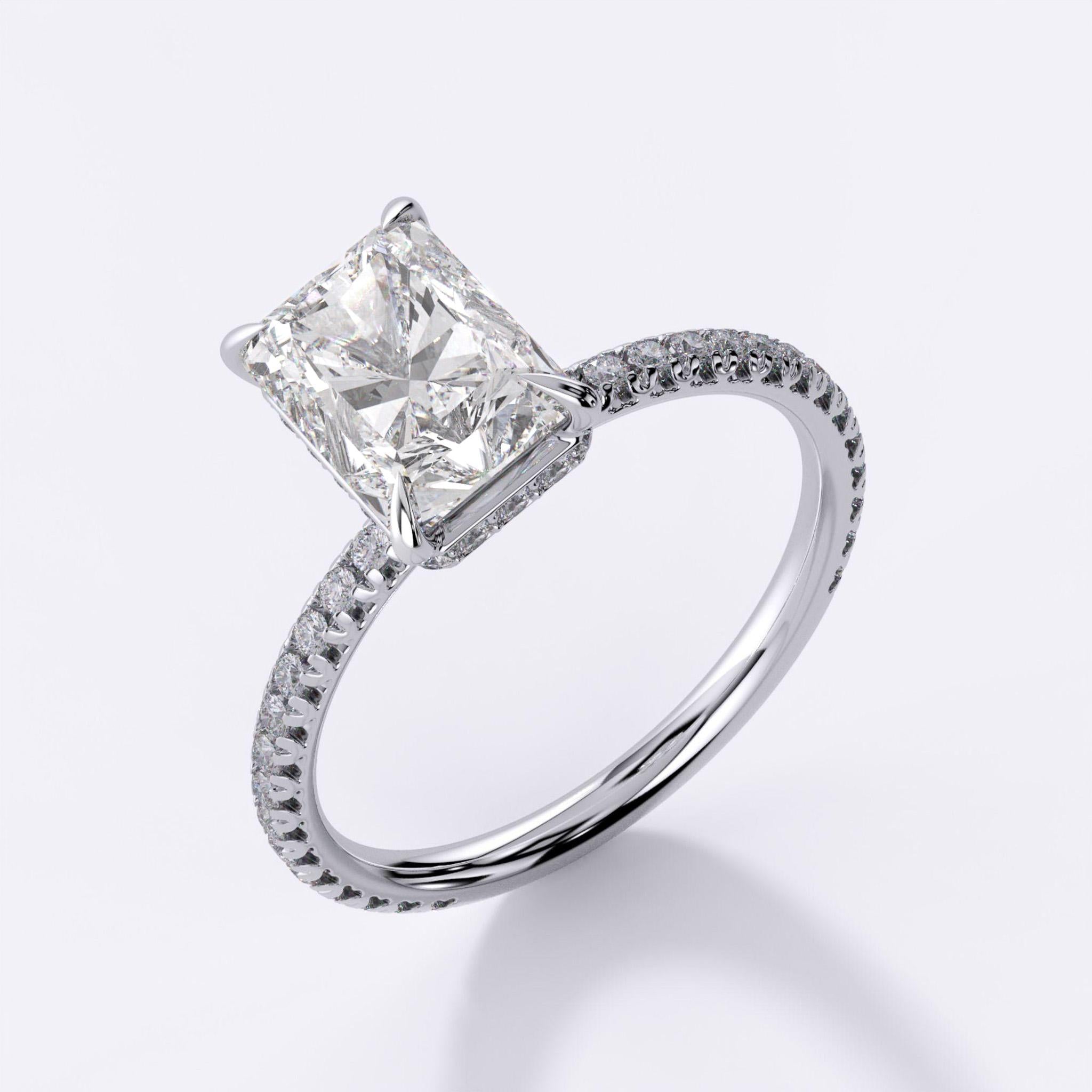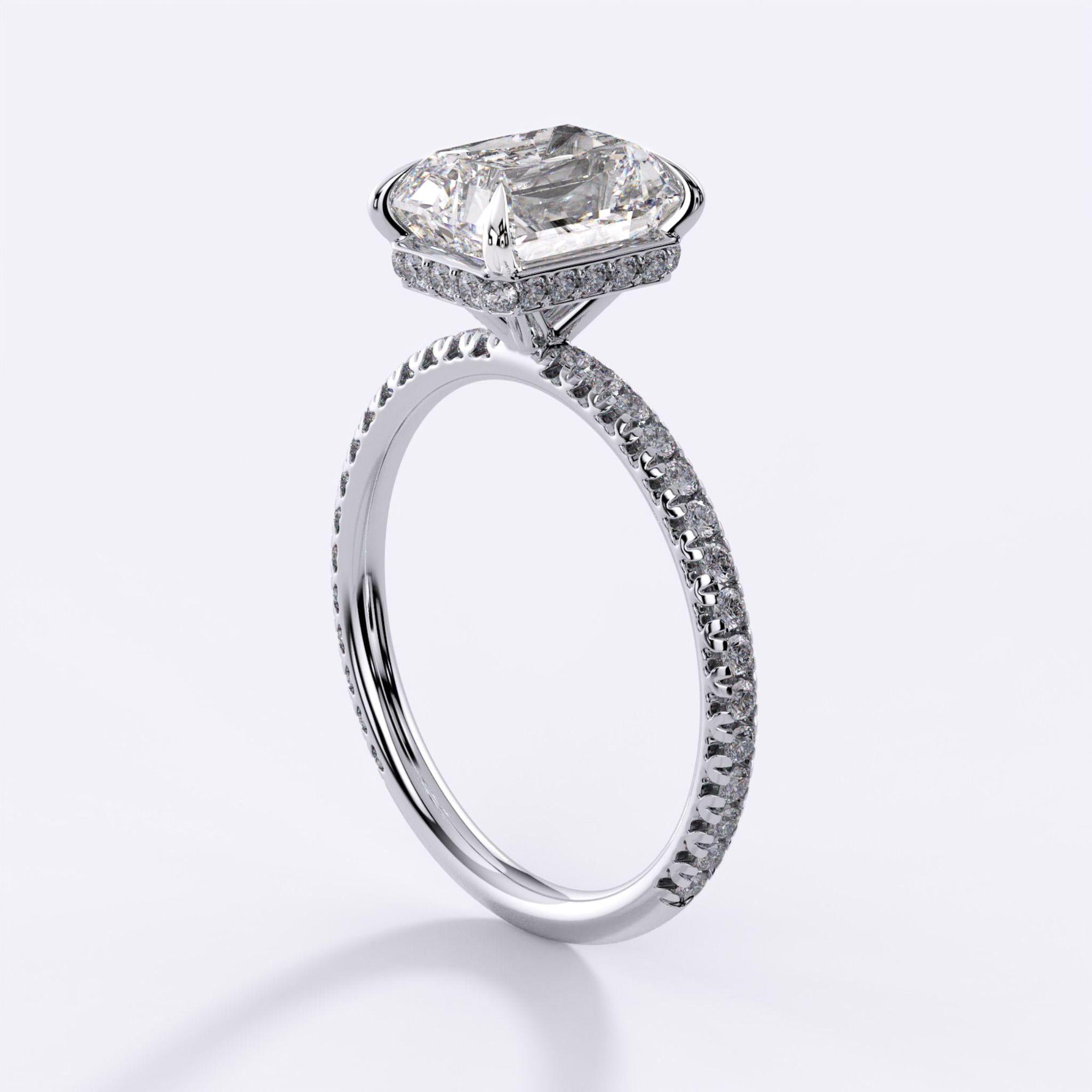 2.0 Carat Long Radiant D/VS2 Diamond Hidden Halo Pave Engagement Ring