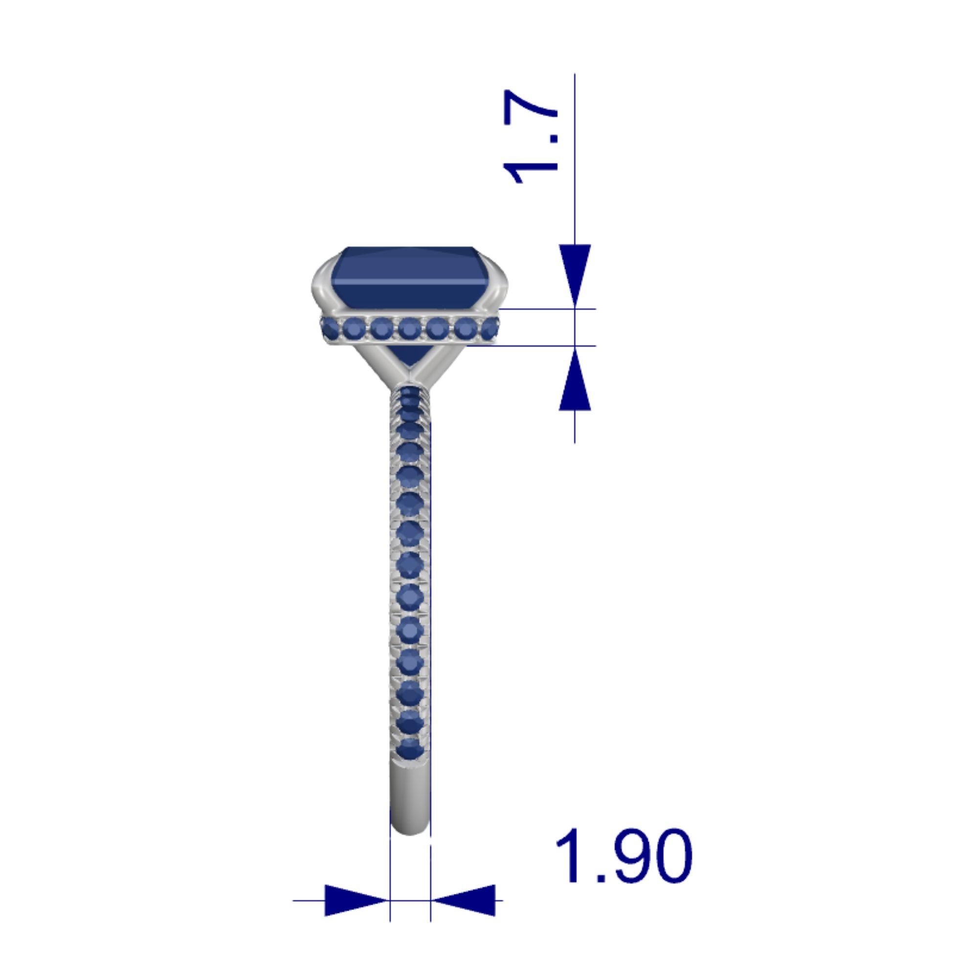 The stone is loose and can be made in several setting configurations. The pictured listing features an 18K white gold setting with 4-prong basket and hidden halo of pavé diamonds underneath the center stone with a half full pavé diamond band.
